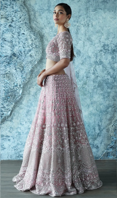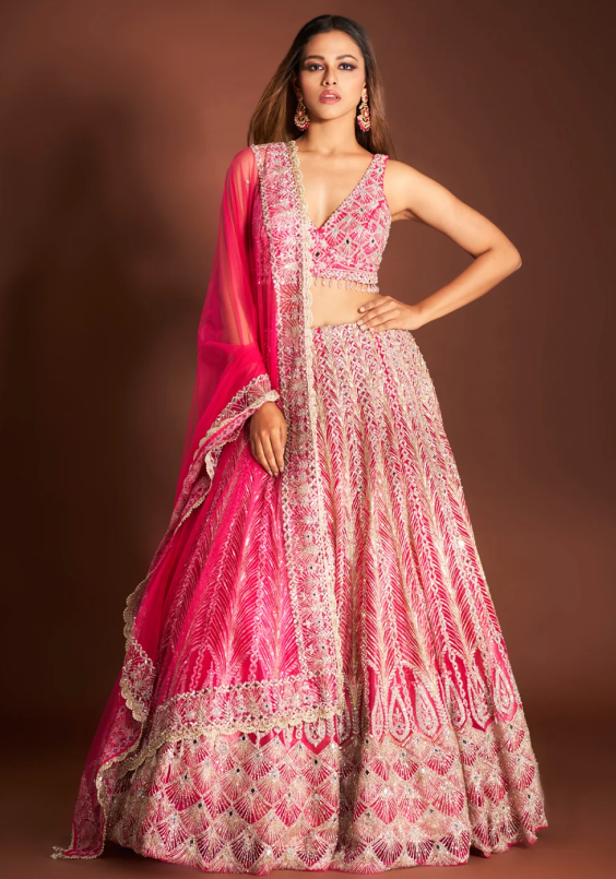 As girls we all at some point of time have fixated on this beautiful colour. Our dolls, birthday dresses, shoes, bags accessories have been this colour. So why not our wedding lehenga? Rani pink with gold & silver over all embroidery will have you feeling like an Indian Barbie.